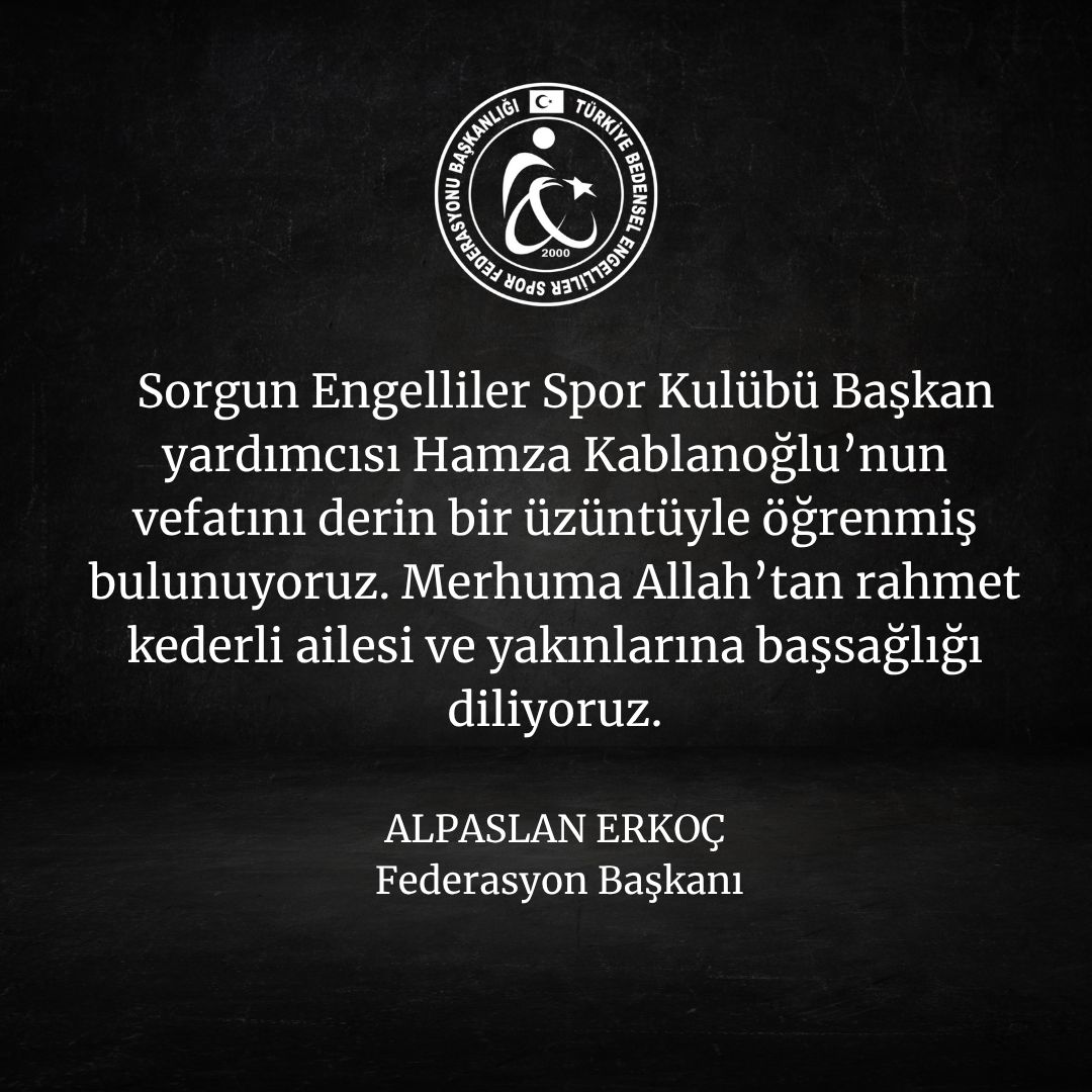 Sporcumuz Sabri Girgin’e Allah’tan rahmet, başta ailesi olmak üzere tüm sevenlerine sabır ve başsağlığı dileriz.