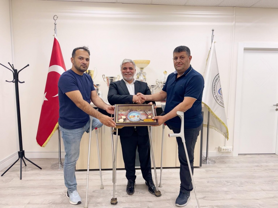 Azerbaycan Ampute Futbol Federasyonu Başkanı Elnur Sadıqov ve Neftçi Ampute Futbol Kulübü Başkanı Ferhad Eyyubov, Türkiye Bedensel Engelliler Spor Federasyonu’nu ziyaret etti. Gerçekleşen ziyarette, Azerbaycan’da ampute futbolunun gelişmesi adına iş birliği olanakları değerlendirildi, tecrübe paylaşımı ve ortak projeler üzerine görüşmeler yapıldı. Federasyon Başkanımız Sayın Alpaslan Erkoç, kardeş ülke Azerbaycan’a her türlü desteği vermeye hazır olduklarını belirterek, bu anlamlı dayanışmanın iki ülke sporuna katkı sağlayacağını vurguladı.